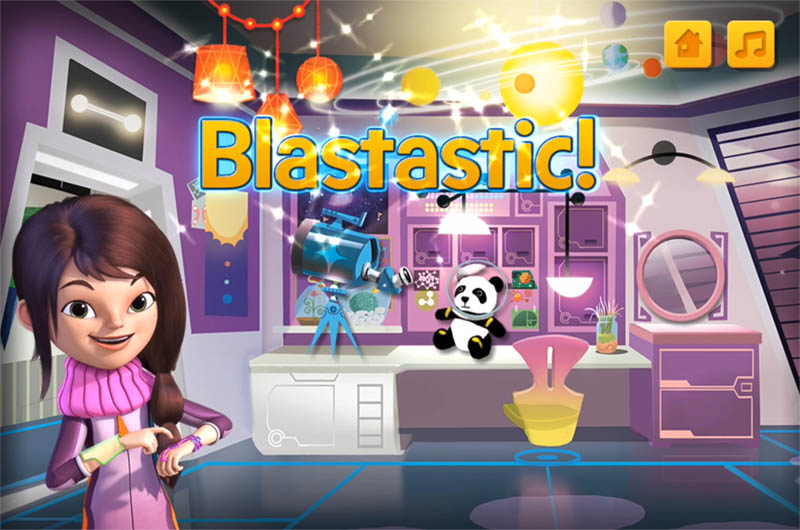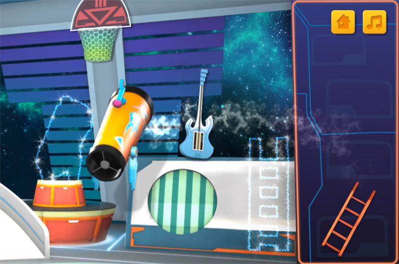 The end result presents the user with a linear carousel of levels which unlock as the player progresses. There are two different types of play which each have 2 different stages, making for 4 steps to get through, including scrubbing the Stellosphere spaceship clean and some drag and drop shape matching fun.